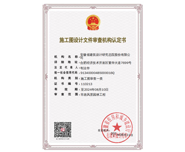 施工圖設(shè)計(jì)文件審查機(jī)構(gòu)認(rèn)定書--市政風(fēng)景園林工程