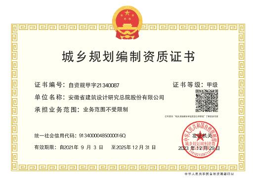 城鄉(xiāng)規(guī)劃編制資質(zhì)證書