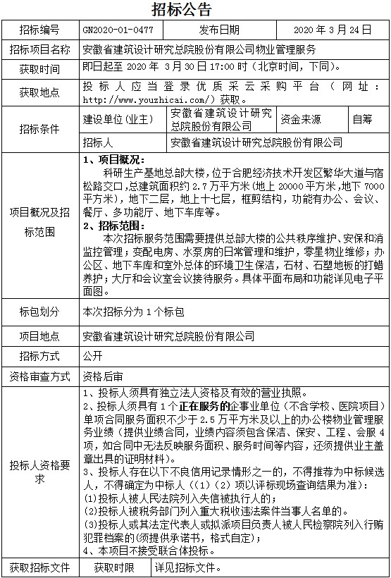 招標(biāo)公告---安徽省建筑設(shè)計(jì)研究總院股份有限公司物業(yè)管理服務(wù)