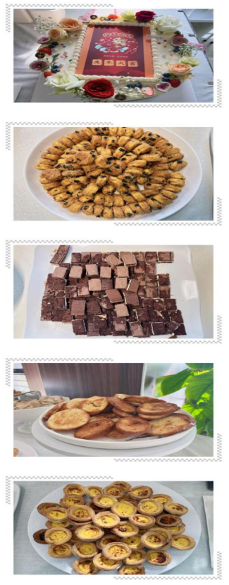 美食美味之后當(dāng)然少不了甜點水果。香蕉、紅提、龍眼、金橘......還有蛋糕、點心、飲料......多樣飯后甜點輪番上場。同事們在一起品美食、話家常,歡聲笑語,氛圍祥和。