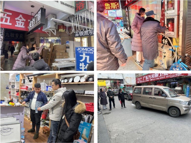東方商城位于合肥市瑤海區(qū),作為省內(nèi)較大的室內(nèi)裝飾材料批發(fā)市場,商城內(nèi)商戶繁多,人流物流密集,再加上建設(shè)時間久,部分消防設(shè)施較為陳舊,存在消防安全隱患。支部通過建材中心了解相關(guān)情況后,主動發(fā)動支部黨員前往商城,為商戶們逐一排查消防安全隱患。大家根據(jù)工作崗位和所學(xué)專業(yè),在商城內(nèi)向商家介紹安全用電、供電設(shè)施維護(hù)等知識,認(rèn)真排查了消火栓等消防設(shè)施,并現(xiàn)場為商戶們普及正確使用滅火器的方法。