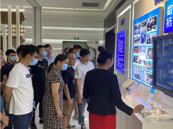 安徽創(chuàng)新館是中國(guó)首座以創(chuàng)新為主題的場(chǎng)館,是安徽創(chuàng)新發(fā)展的引領(lǐng)性工程,館內(nèi)展示著安徽創(chuàng)新發(fā)展的最新成果。8月19日下午,習(xí)近平總書記走進(jìn)安徽創(chuàng)新館,了解我省科技創(chuàng)新和新興產(chǎn)業(yè)發(fā)展情況,并對(duì)相關(guān)工作取得積極進(jìn)展表示肯定。展館建筑將古徽州文化和現(xiàn)代建筑設(shè)計(jì)相結(jié)合,在傳承徽派文化的基礎(chǔ)上大膽創(chuàng)新,三座建筑單體由整體的“圓”錯(cuò)落演變分解為三個(gè)“扇”形,各個(gè)單體之間通過(guò)門樓、涼亭、牌坊、水景等徽派古村落景致有機(jī)串聯(lián),以現(xiàn)代創(chuàng)新手法,傳承地域歷史文脈。在支部書記關(guān)朝江的帶領(lǐng)下,大家認(rèn)真學(xué)習(xí)了展館的創(chuàng)新性設(shè)計(jì),并在館內(nèi)參觀了我省的創(chuàng)新成果。