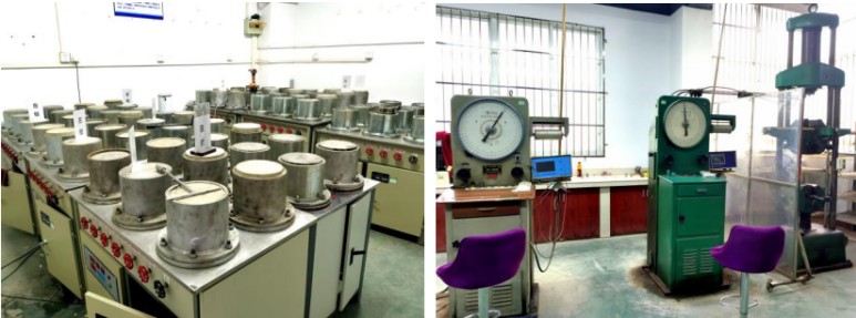 會后,大家參觀了水泥試驗室、混凝土試驗室、混凝土抗?jié)B試驗室、力學(xué)試驗室、瀝青及瀝青混合料試驗室等,了解混凝土抗?jié)B、混凝土抗壓、鋼筋拉伸以及瀝青混合料等原材料試驗檢測的相關(guān)專業(yè)知識,進(jìn)一步開拓了大家的工作思路與視野。