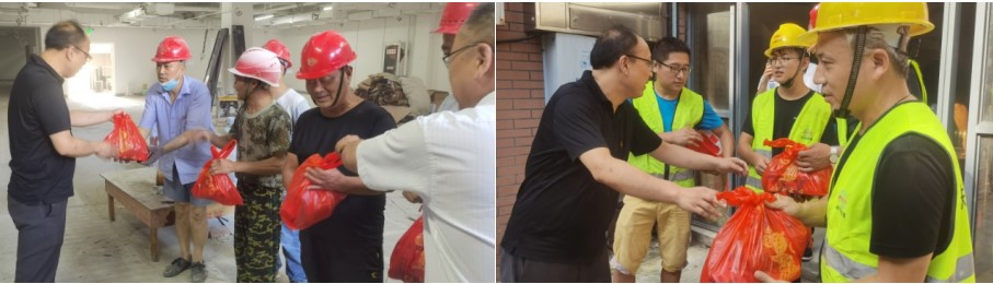 烈日炎炎、酷暑盛行。8月6日下午,公司第六黨支部組織黨員前往公司所屬合肥學(xué)院南艷湖校區(qū)、金安廣場、廣福花園三個(gè)EPC項(xiàng)目部開展“工地慰問暖人心 項(xiàng)目一線鼓干勁”主題黨日活動(dòng),為奮戰(zhàn)在一線的黨員職工和參建工人送去清涼和關(guān)愛。