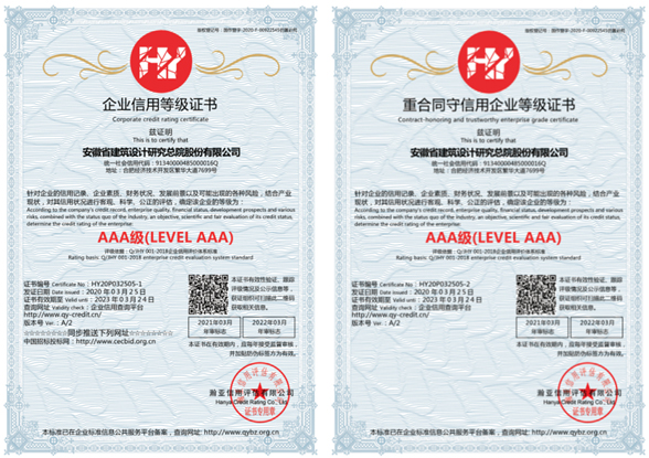 近日,公司順利通過由第三方信用評估機(jī)構(gòu)認(rèn)定的企業(yè)信用評級工作,并獲得AAA級企業(yè)信用等級證書和AAA級重合同守信用企業(yè)等級證書。