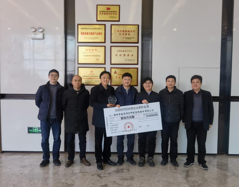2月4日下午,合肥經(jīng)開區(qū)建設(shè)發(fā)展局局長姚峰代表經(jīng)開區(qū)管委會專程來到公司送上獎杯和獎金,并送上新春祝福。高松董事長向經(jīng)開區(qū)管委會長期以來對公司發(fā)展的關(guān)心和支持表示衷心的感謝,并將繼續(xù)積極為經(jīng)開區(qū)經(jīng)濟(jì)社會發(fā)展貢獻(xiàn)力量。