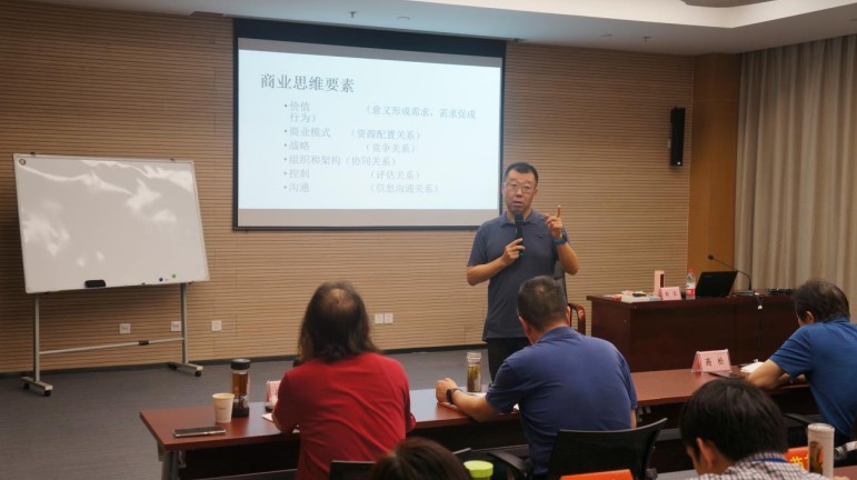 本次培訓(xùn)由中國科學(xué)技術(shù)大學(xué)管理學(xué)院副教授趙征講授。培訓(xùn)內(nèi)容主要包括三個部分,分別是設(shè)計思維、商業(yè)思維和管理思維。趙教授在培訓(xùn)中圍繞主題并引用“民宿”、“農(nóng)夫山泉”、“木屋燒烤”等眾多案例,重點(diǎn)介紹了思維的本質(zhì)、管理思維的“升維”和商業(yè)思維要素,主題鮮明,內(nèi)容豐富,啟發(fā)思考。