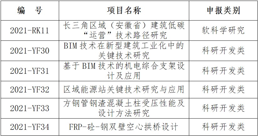 喜報(bào) | 公司6個(gè)項(xiàng)目被列入2021年度安徽省住房城鄉(xiāng)建設(shè)科學(xué)技術(shù)計(jì)劃項(xiàng)目名單