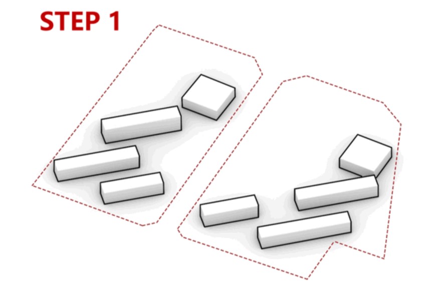 項(xiàng)目團(tuán)隊(duì)立足現(xiàn)狀,出于對(duì)朝向的選擇和對(duì)使用空間品質(zhì)的追求,在建筑布局時(shí)沒有選擇順應(yīng)偏轉(zhuǎn)角度過大的城市道路走向來打造完美臨街面的布置方式,而是根據(jù)使用需求順應(yīng)朝向南北布置,打造了靈活豐富的校園空間。運(yùn)用靈動(dòng)多維的立體空間環(huán)抱室外開場(chǎng)空間,營(yíng)造出廣闊山河的意向。
