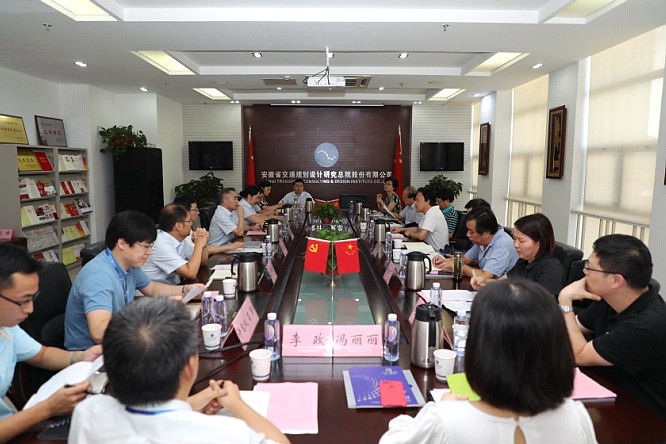 8月30日,董事長高松、總經(jīng)理徐正安帶領(lǐng)公司領(lǐng)導(dǎo)班子成員及相關(guān)部門負(fù)責(zé)人前往安徽省交通規(guī)劃設(shè)計研究總院學(xué)習(xí)調(diào)研。省交規(guī)院董事長王吉雙、總經(jīng)理徐宏光及相關(guān)領(lǐng)導(dǎo)、部門負(fù)責(zé)人參加座談。