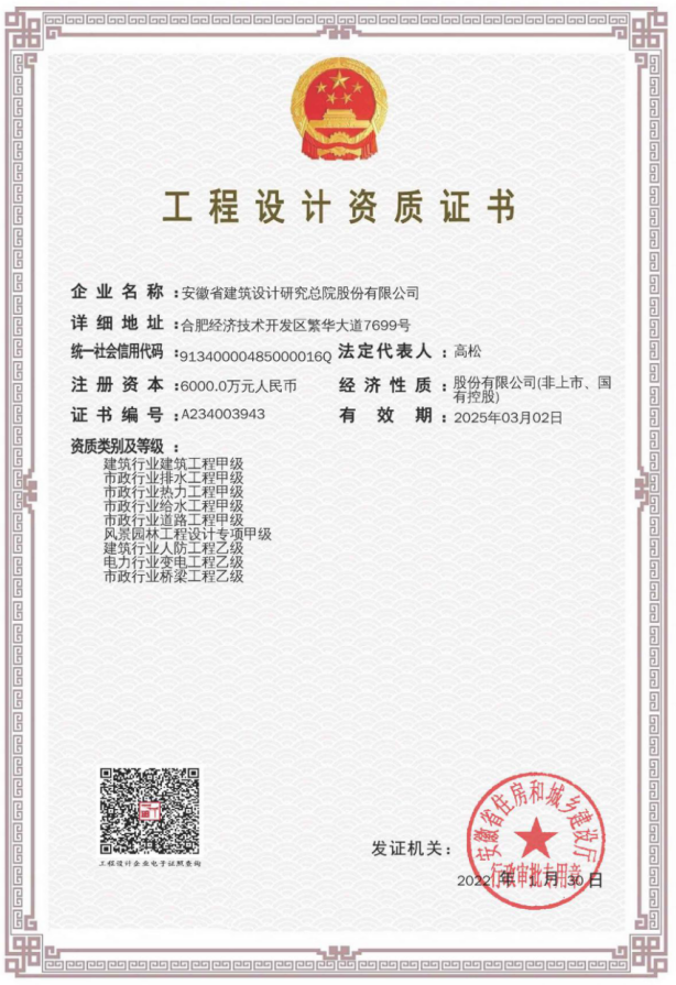 近日,安徽省住房和城鄉(xiāng)建設(shè)廳發(fā)布行政許可審批公告,公司順利通過市政行業(yè)道路工程甲級資質(zhì)審批,晉升為市政行業(yè)道路工程甲級設(shè)計單位。