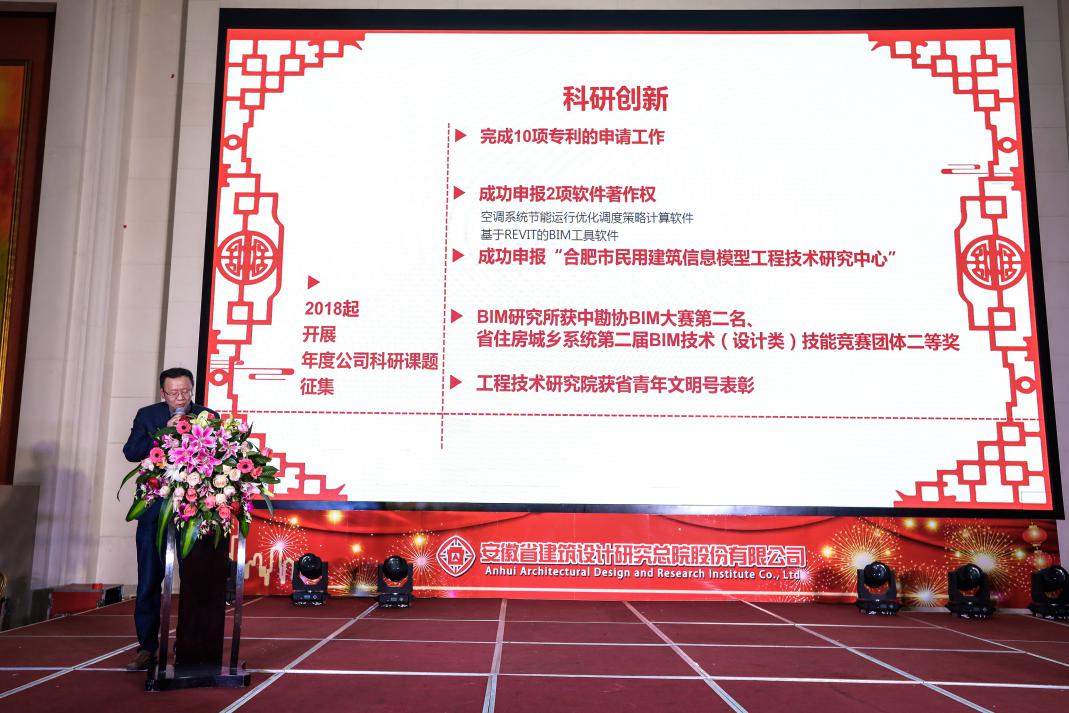 1月31日下午,安徽省建筑設(shè)計研究總院股份有限公司2019年新春聯(lián)歡會舉行。公司領(lǐng)導(dǎo)與全體員工、部分離退休老同志歡聚一堂,總結(jié)成績、表彰先進,展望明年工作、喜迎新春佳節(jié)。