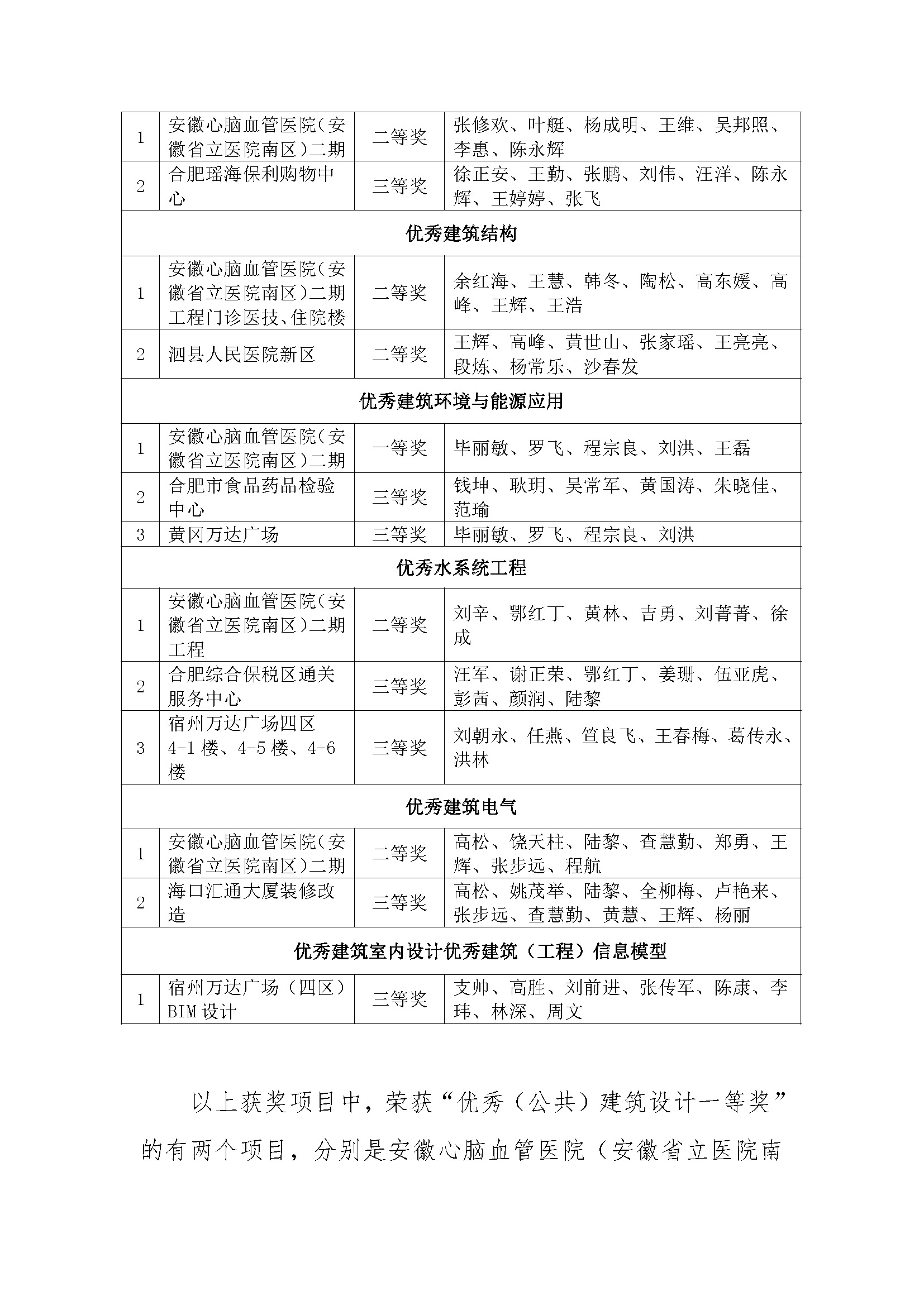 公司在2019年度安徽省土木建筑學(xué)會建筑創(chuàng)新獎評選中榮獲18個(gè)獎項(xiàng)