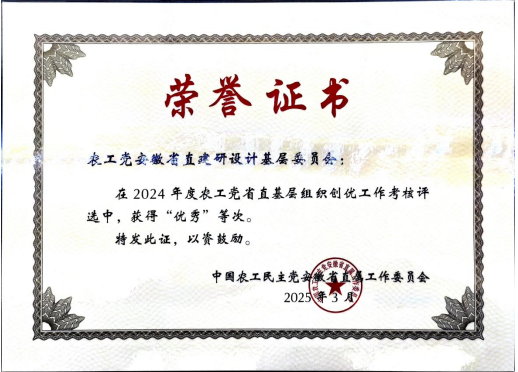 農(nóng)工黨安徽省直建研設(shè)計(jì)基層委員會(huì)獲2024年度創(chuàng)優(yōu)工作考核優(yōu)秀