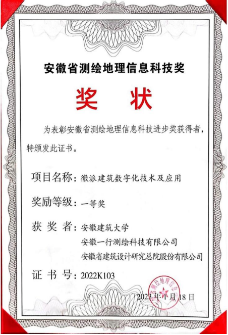 公司榮獲安徽省測(cè)繪地理信息科技一等獎(jiǎng)