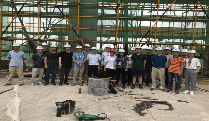 安徽首例超40米預應力框架梁張拉成功 建筑設計三院結(jié)構(gòu)設計人員在肥西縣全民健身中心現(xiàn)場見證